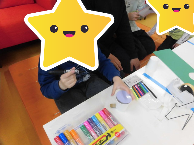 以前にもお楽しみ活動で行ったことがありますが、今回はラメを入れて華やかにして初めてのお友達とも一緒に挑戦していきました!
