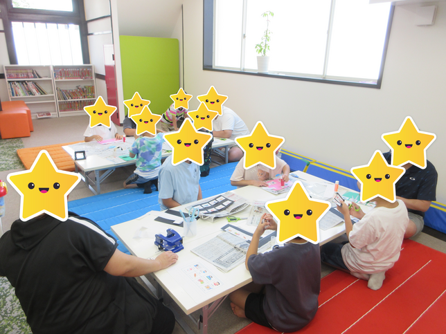午前中はいつも通りに学習とお弁当を食べて、午後には祭りに使うチケット作成と説明を聞いて、東部勤労者センターに移動しています。