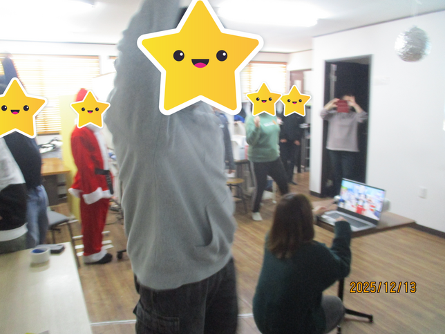 ジュースで乾杯した後は、クイズやゲームを楽しみました。