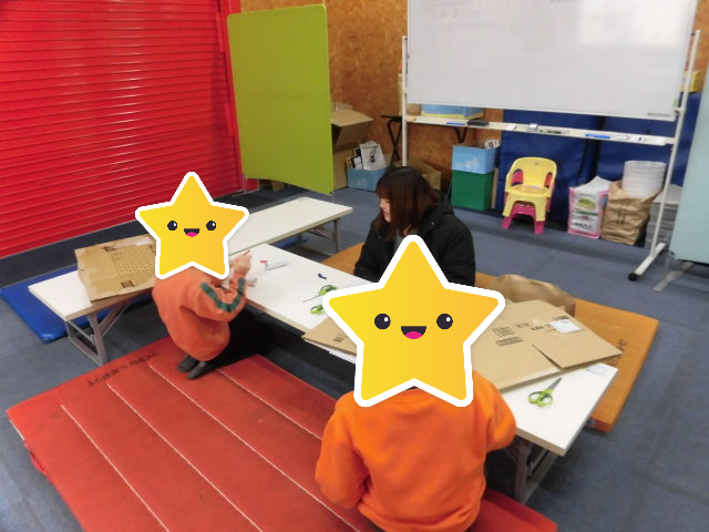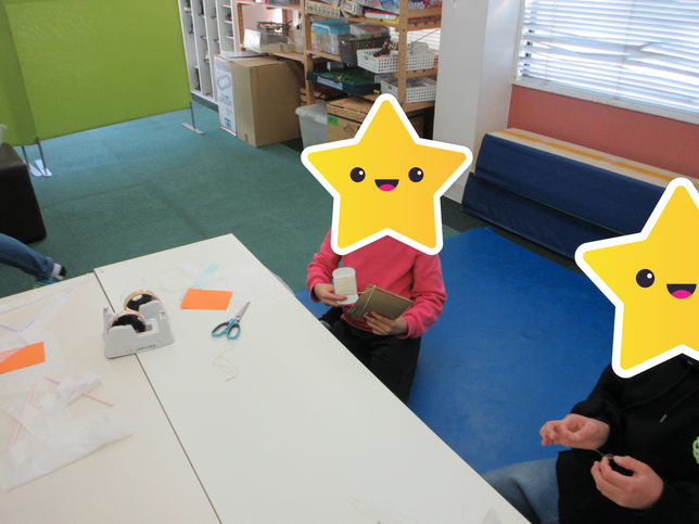 セロテープやクリップを順番で使ったり、どんな形の釣り堀にするか相談し合ったりと、みんなで仲良く準備することができました。