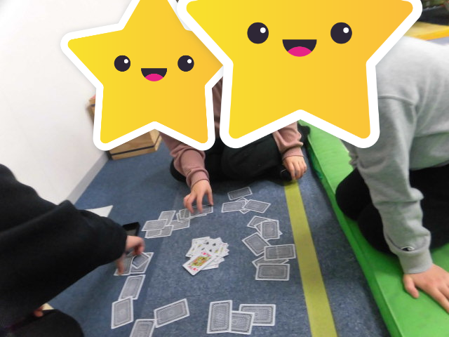 今日は運動で転がしドッチボールをしたり、学習の時間にカードゲームなどもしました。