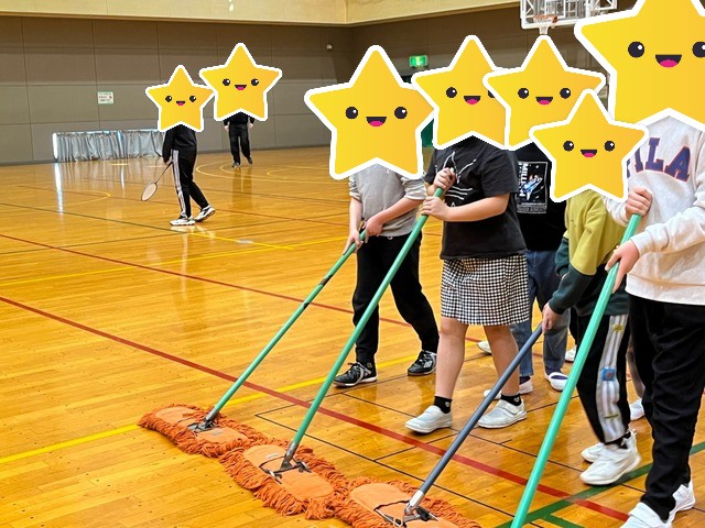 遊んだ後はお掃除をして、体育館の方に挨拶をしています。