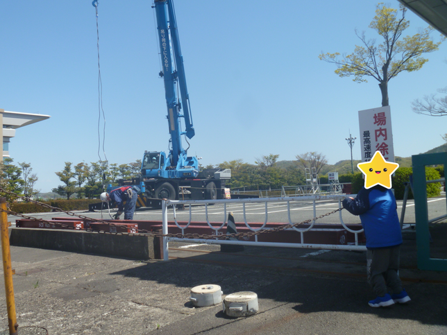 早速、午前中にお散歩に行きましたが、教室の近くで青色のクレーン車が工事をしていました。みんな興味津々♪ クレーン車が動くと子ども達は笑顔を見せながら眺めていましたよ!!!
