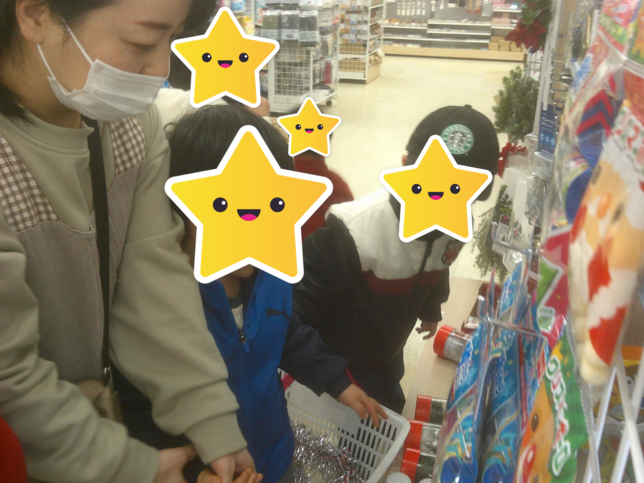 お店に到着後もう一度お約束確認を終えると、早速お買い物スタートです!それぞれがクリスマスコーナーから思い思いの商品を選びます♫