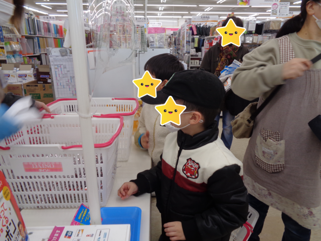 店員さんへ「お願いします」と買い物カゴを手渡すと、500円玉を支払う・お釣りを受け取る・袋詰めなど、スタッフと一緒にたくさんのことを経験しました♫