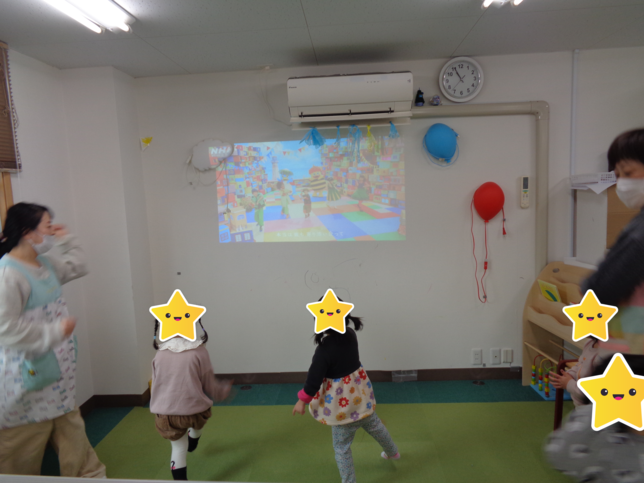写真はミュージックビデオを見ながら歌とダンスをのびのびと楽しむ様子です!