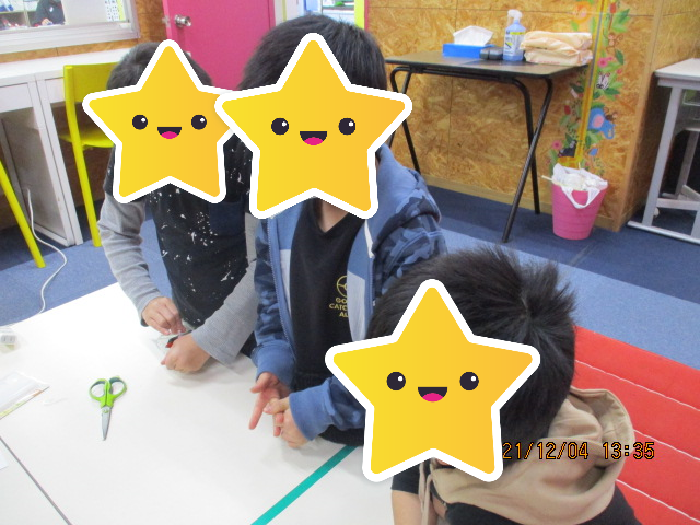 教室へ到着後は飾り付けに取り掛かりました。教室中が一気にクリスマス仕様になり、クリスマスが来るのがとても待ち遠しいです!子ども達の「クリスマスまだ?」の台詞からも楽しみにしている様子が伝わってきます。