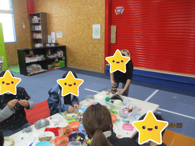 お手紙を書き終えると、クリスマスに向けてかわいいクリスマスリース作りの始まりです。