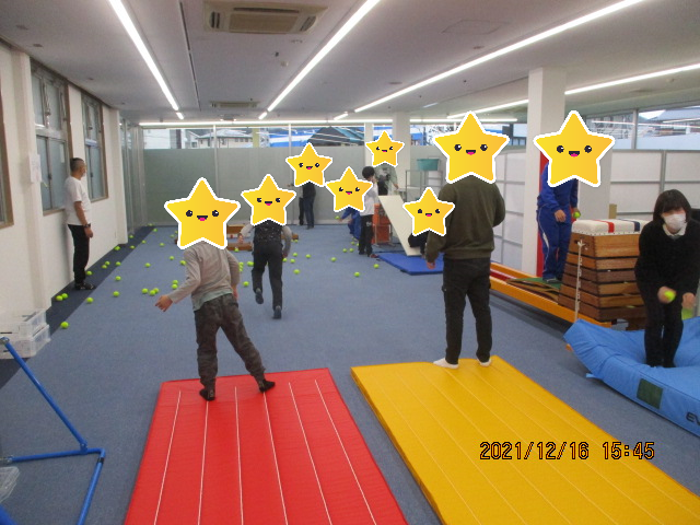 合計108個のテニスボールが全て入るまで帰れないよ~‼との江原先生からのミッションをもらい、スタッフも途中参戦しながら子供たちと一丸となって挑戦し最後の1個を入れた子は拍手喝采の嵐でした。