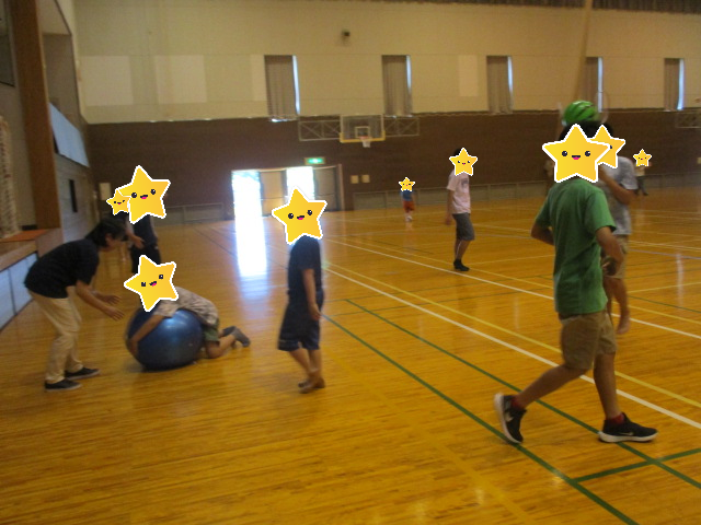 ボールで遊んだり、広い体育館の中を走り回ったりと、いつも見る事が出来ない姿と笑顔を沢山みる事が出来ました。