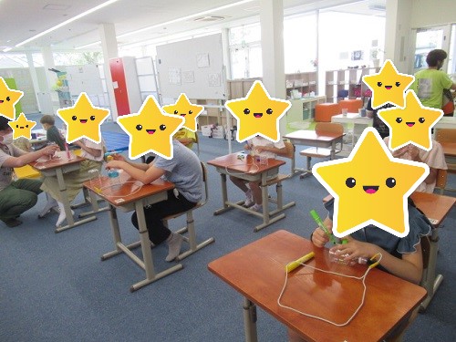 休憩を挟みながら実施しています。外の蒸し暑い所から、涼しい室内は子ども達にもすごく快適だったようです!