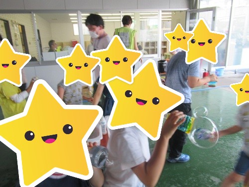 7月最初のお楽しみ活動でシャボン玉を飛ばしました。