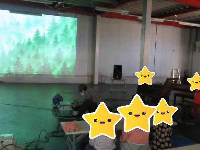 会場設営チームは、スタッフと一緒に見やすい角度や椅子の位置を考えながら、設営をしました。完了すると「映画館みたい!」と満足気でしたよ!
