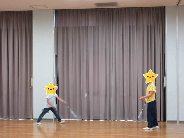初めての場所なので緊張からか、最初は座って様子を見ていたようですが、誘われてバドミントンや風船遊びを一緒に始めました。