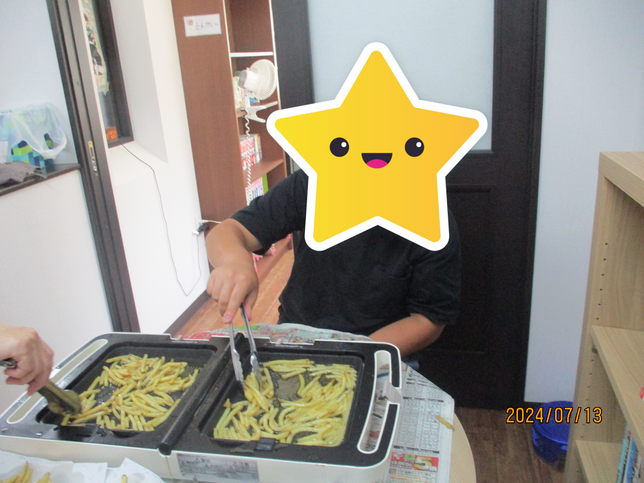 フライパンや包丁、IHなどの調理器具を使って火傷や怪我に気をつけながら調理を進めていきました。