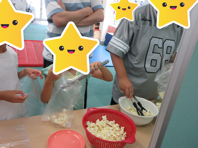 映画が始まる前には高学年のお友達がポップコーンづくりをしてくれました。