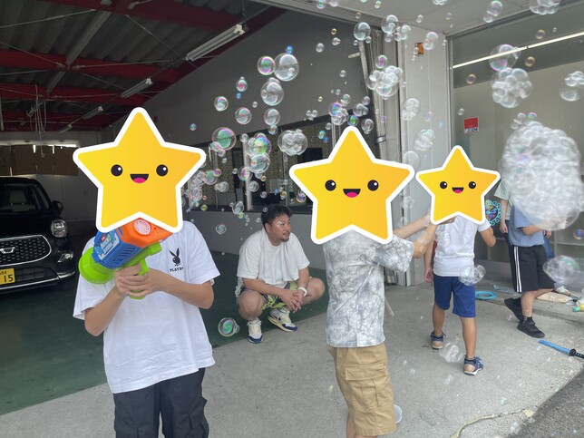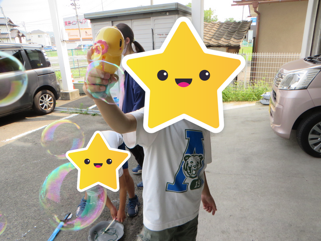 午後のお楽しみ活動は、「シャボン玉遊び」をしました。