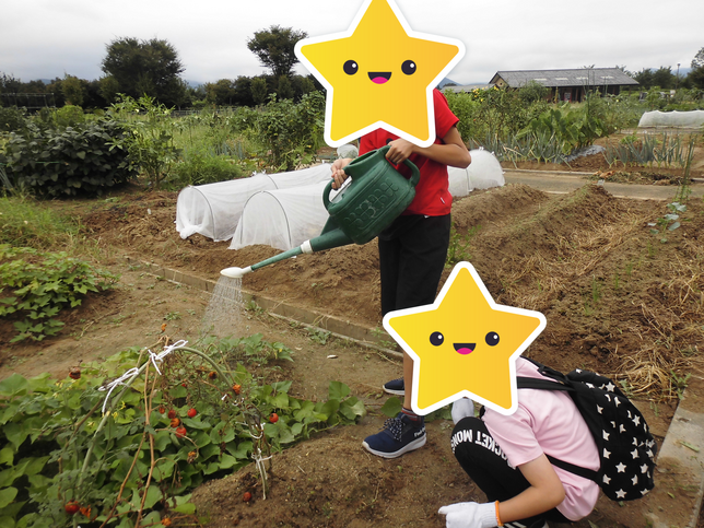 水を汲んで畑に水をまく係、草取りの係、それぞれの作業を開始します。