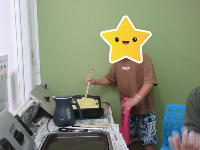 おにぎりや焼きそばの係のみんなは、「家で作っている」「夏休みのバーベキューの時作った」など経験を語りながら、手際よく楽しそうに調理していました。