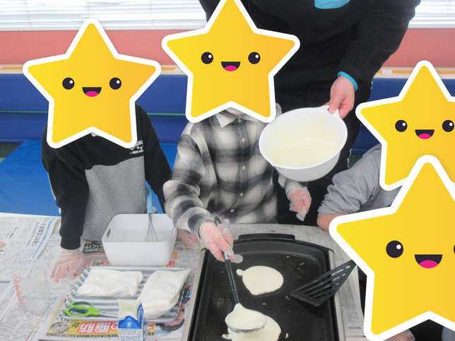 ボールレクの後はみんなでクッキング♪ホットケーキ作りです(*^_^*)