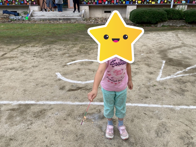 花火に慣れていない子もいましたが、自分やお友達に火が付かないようゆっくり歩いたり、斜め下に向けて持ったりと工夫をして安全に楽しんでいます。