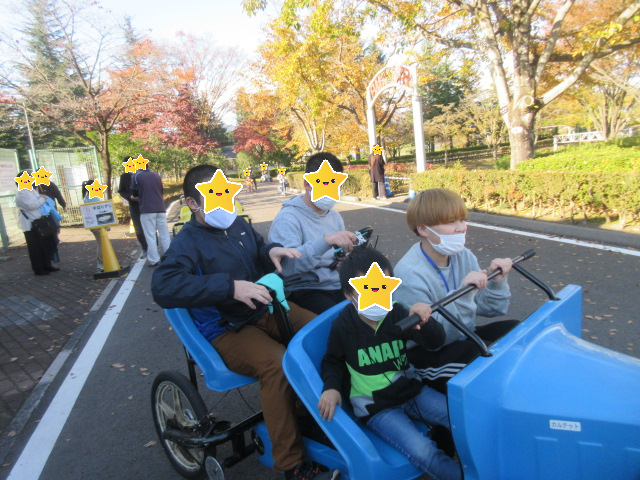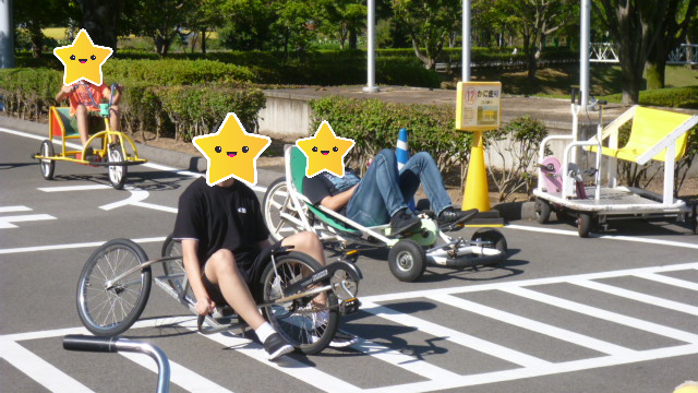 サイクルスポーツ広場には普通の自転車だけではなく寝ながらこいだり2人で乗ったり家族連れで乗れるファミリーカーなど様々あるので、お友達と乗ったりスタッフを誘って乗ったりと思い思いに楽しむ姿が見られました。
