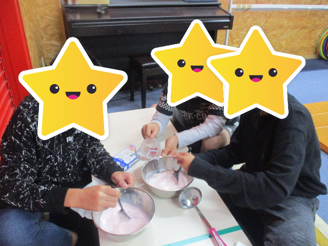 ゼリー班とシャービック班に分かれておやつ作りの始まりです(^^♪