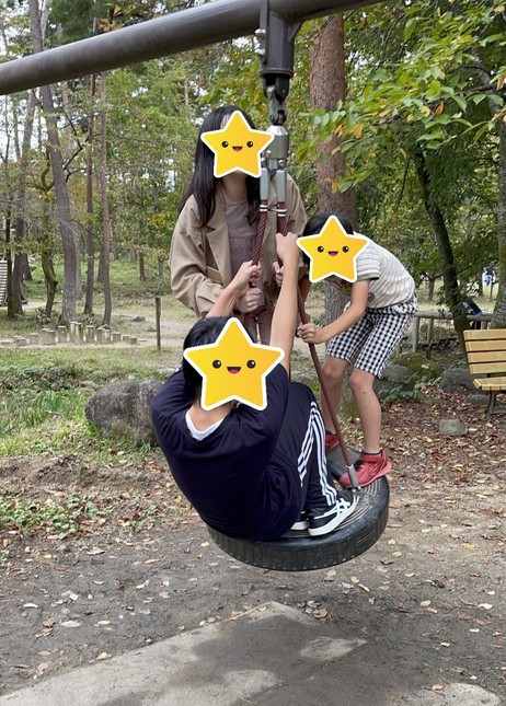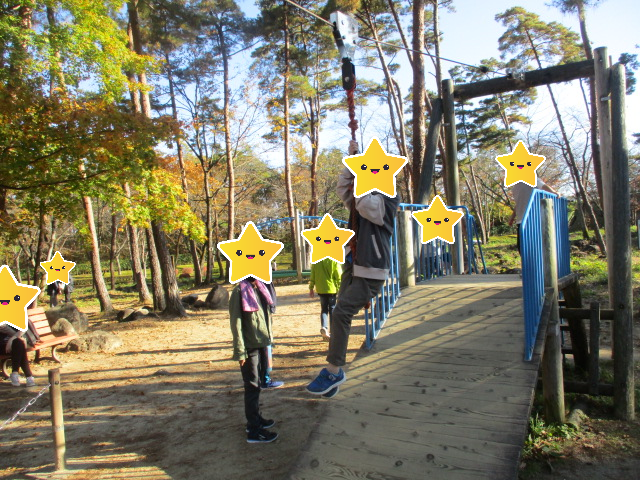 それぞれ丸太を登ったり、グラグラ揺れる橋を渡ったり、タイヤのブランコで大はしゃぎしていましたよ。