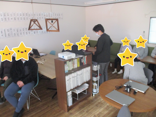足を上げたり、手を床についたりと、頭で考えながら運動しました。お友だちやスタッフと「こうじゃない?」などと教え合いあいながら、和気あいあいとした雰囲気の中たくさん運動しました。(^O^)/