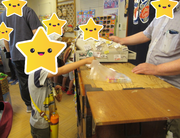 どんな駄菓子を買ったのか見せ合ったり、味の感想を言ったりしながら、楽しい雰囲気のなかで食べていた子どもたちです!