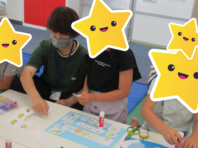 すてむぼっくすは、スペシャルゲストとして旭町の年長さん2人が参加しています。鳥谷野教室からは、来年度2年生になる現1年生が年長さんとペアになるようにしています。