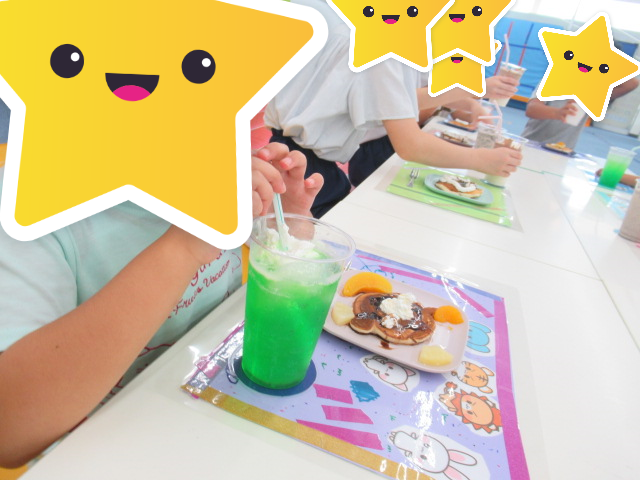 生クリーム担当は、生クリームに抹茶パウダーを入れて抹茶生クリームを作りました♪段々緑色に変わっていく生クリームに子どもたちは興味津々(^^)