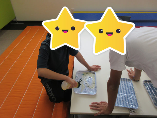 ならば、自分で作ってみよう!とのことで、本日の一番人気コーナーでした。8人のお友達が挑戦しました。好きなシールの上に、レジン液を乗せます。細かい作業で、つまようじを使って形を整えるという高度なことも経験しました。みんな、真剣なまなざしで手を進めていました。