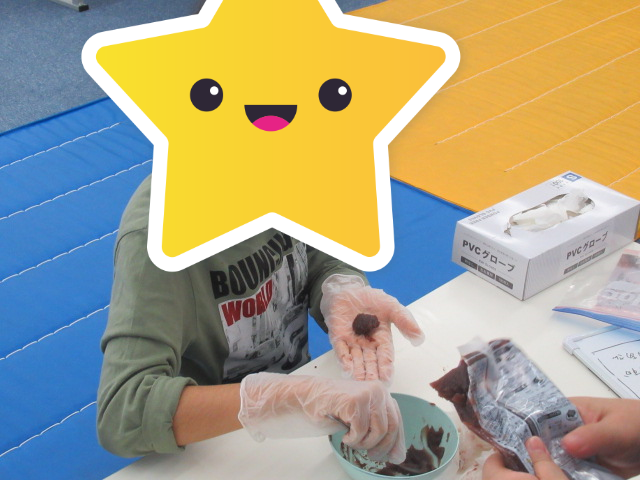 「片栗粉を多めにつけてみればいいのかな?」「お餅をかぶせちゃえばいいんだ!」と、夢中になって服が片栗粉で真っ白になりながらも、自分なりに考えながら作ることができました!