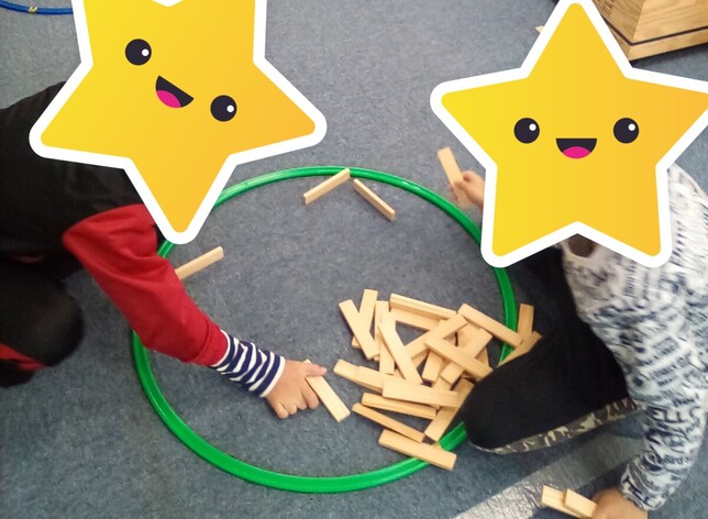 説明を聞いた後、ペアを組んだお友達と交代で行います。