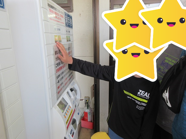 スタッフから財布を受け取って、販売機でチケットを購入です。