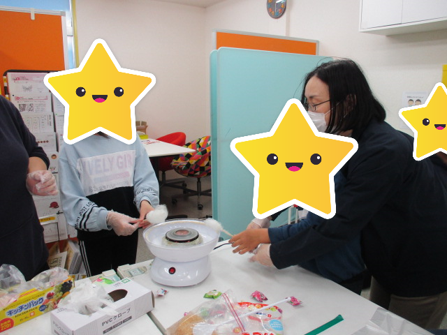 今日のお楽しみ活動は『おやつクッキング』を行い、パフェと綿あめの2つを作りましたよ。