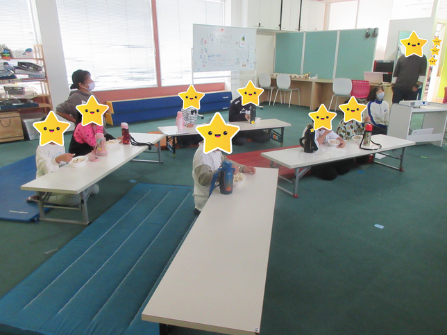 教室に着くと、みんなで「いただきます。」をして食べます。