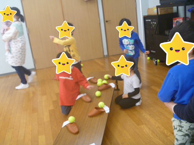 普段は転がしドッヂをしている子どもたちも、いつもと違うボールの使い方にドキドキしながら行うことができました。