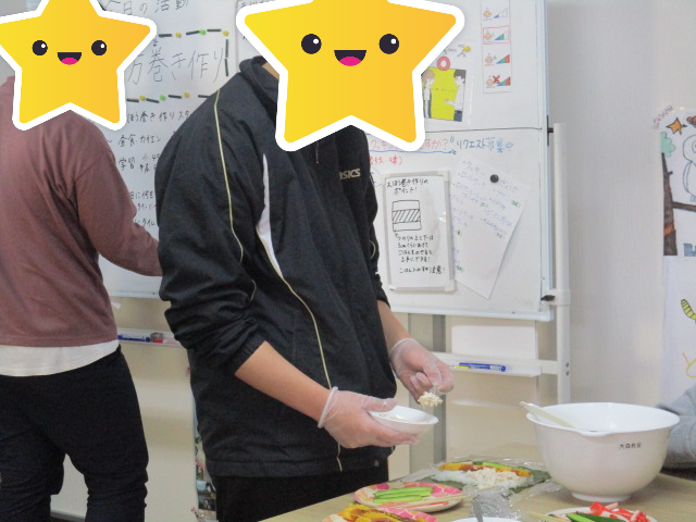 大森教室のお楽しみ活動は、前日の節分にちなんで、【恵方巻作り】を行いました。