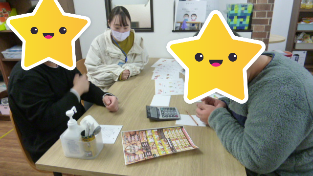 入室後は、メニュー表を見ながら、千円で何がどのくらい買えるのかを電卓を使ったり、「何にしようかな~」と、スタッフに相談しながら決めていきました。