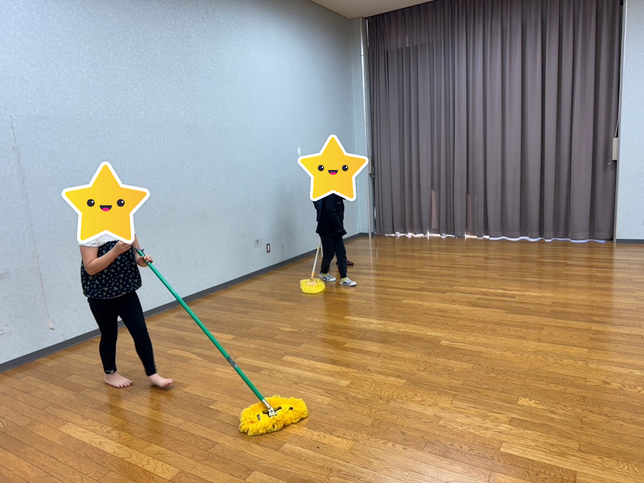 モップもお友達と一緒にかけたり、順番を守りながら交互にかけたり…