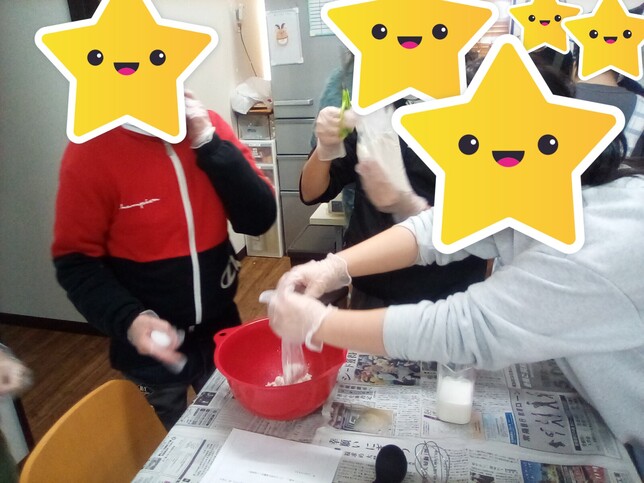 高学年のお友達がボウルを押さえてくれる姿もあり、