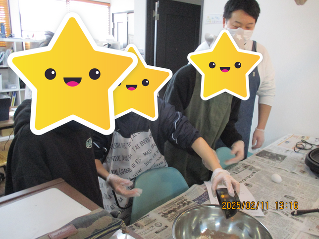 今日はバレンタインデーということで鳥谷野っ子は手作りチョコを作りました(^_^)
