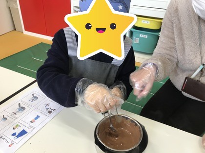 1人分ずつに分けたことで、2種類のチョコレートを混ぜ合わせる子や大きめに作る子、家族やお友達に渡すんだと小さめにたくさん作る子など、思いのこもったチョコレートが出来上がりました☆