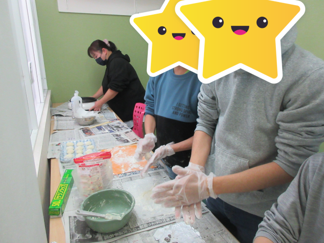 みんなで協力して生地をこね、好きな形に型抜きしていきます。