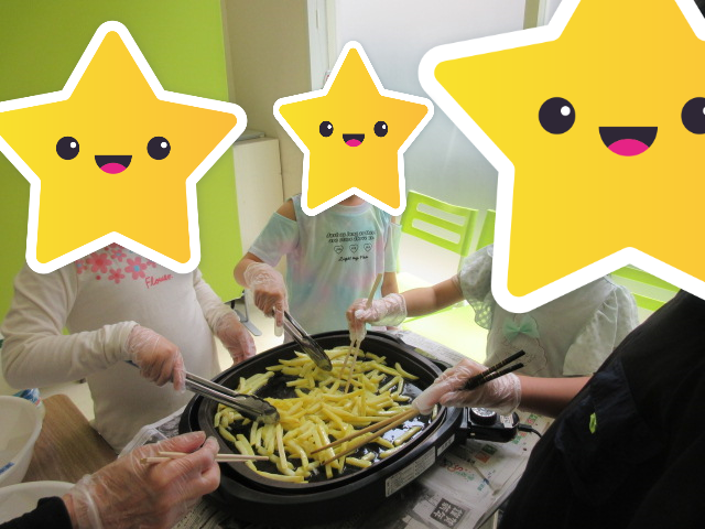 一方、ホットプレートでは子供たちもサツマイモのフライドポテトに挑戦しました。