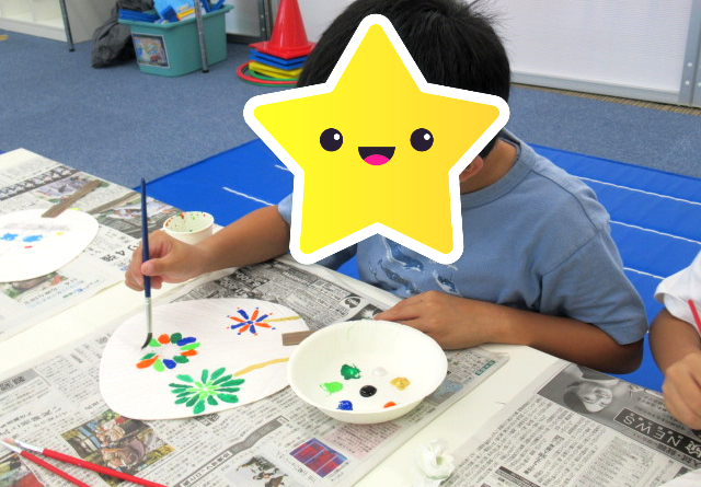 夏らしく花火の絵を描いたり、好きなキャラクターの絵を描いたり。