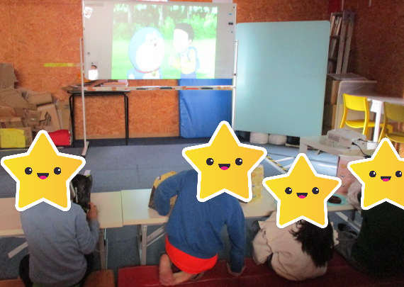 教室へ戻った後は映画鑑賞の準備が整っており、本日はみんなで決めた「ポケモン」の映画を観ることになりました。