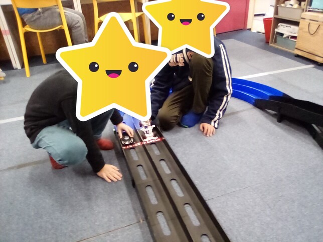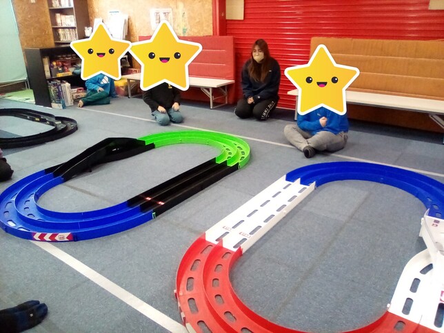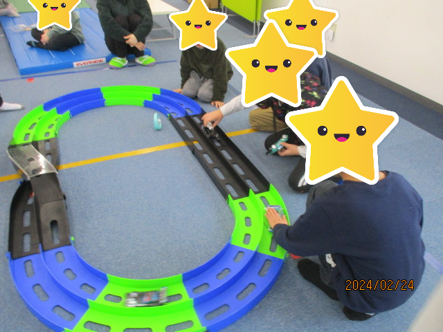 本日のお楽しみ活動は、子どもたちに大人気の「ミニ四駆レース」でした。
